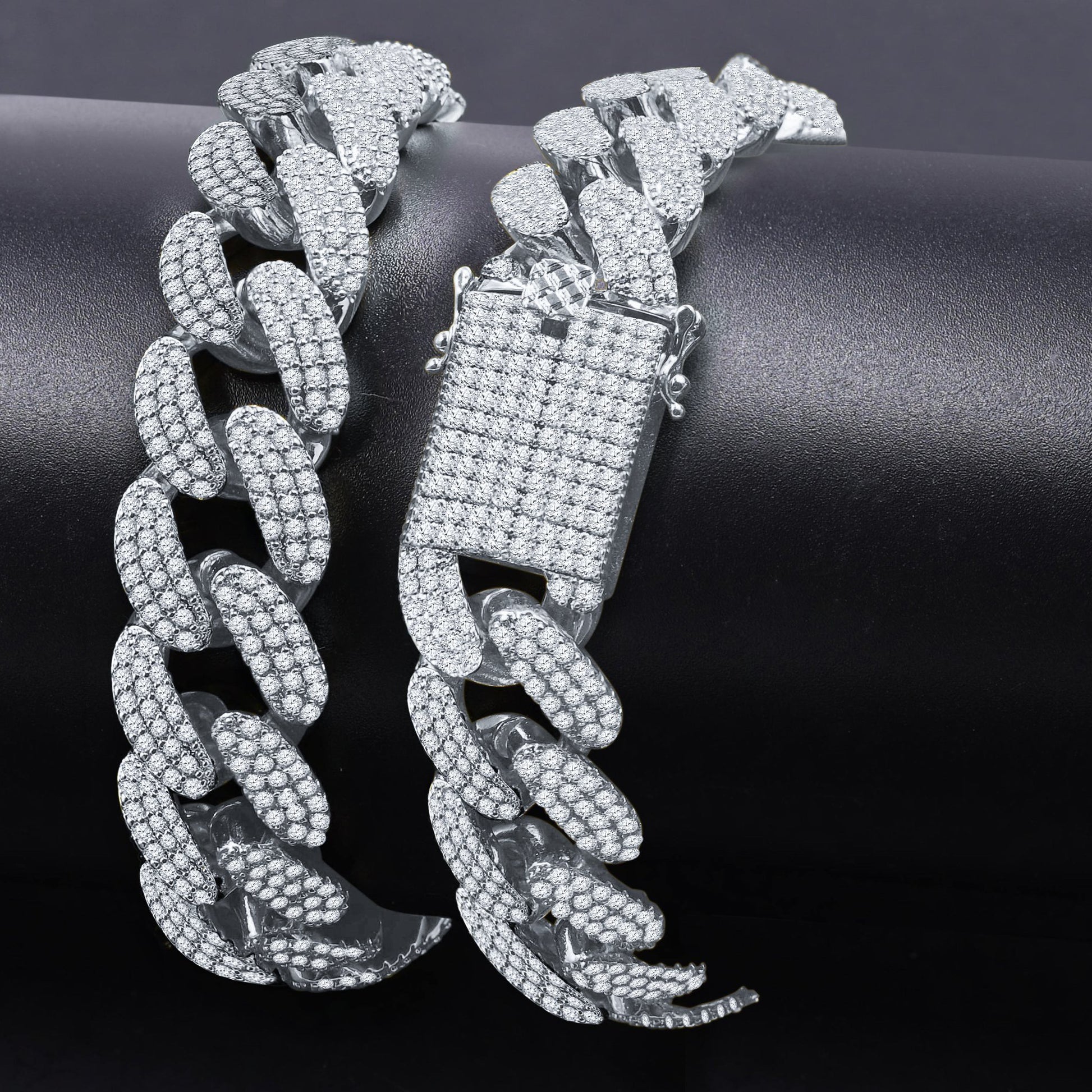 STALLION fully embraces its essence of the word when it comes to describing this meticulously crafted solid cuban link chain immersed in cubic zirconia by artisans who employ nothing but perfection in each of their masterpieces. This chain redefines luxury to its core for all cubano enthusiasts. Wear it with confidence