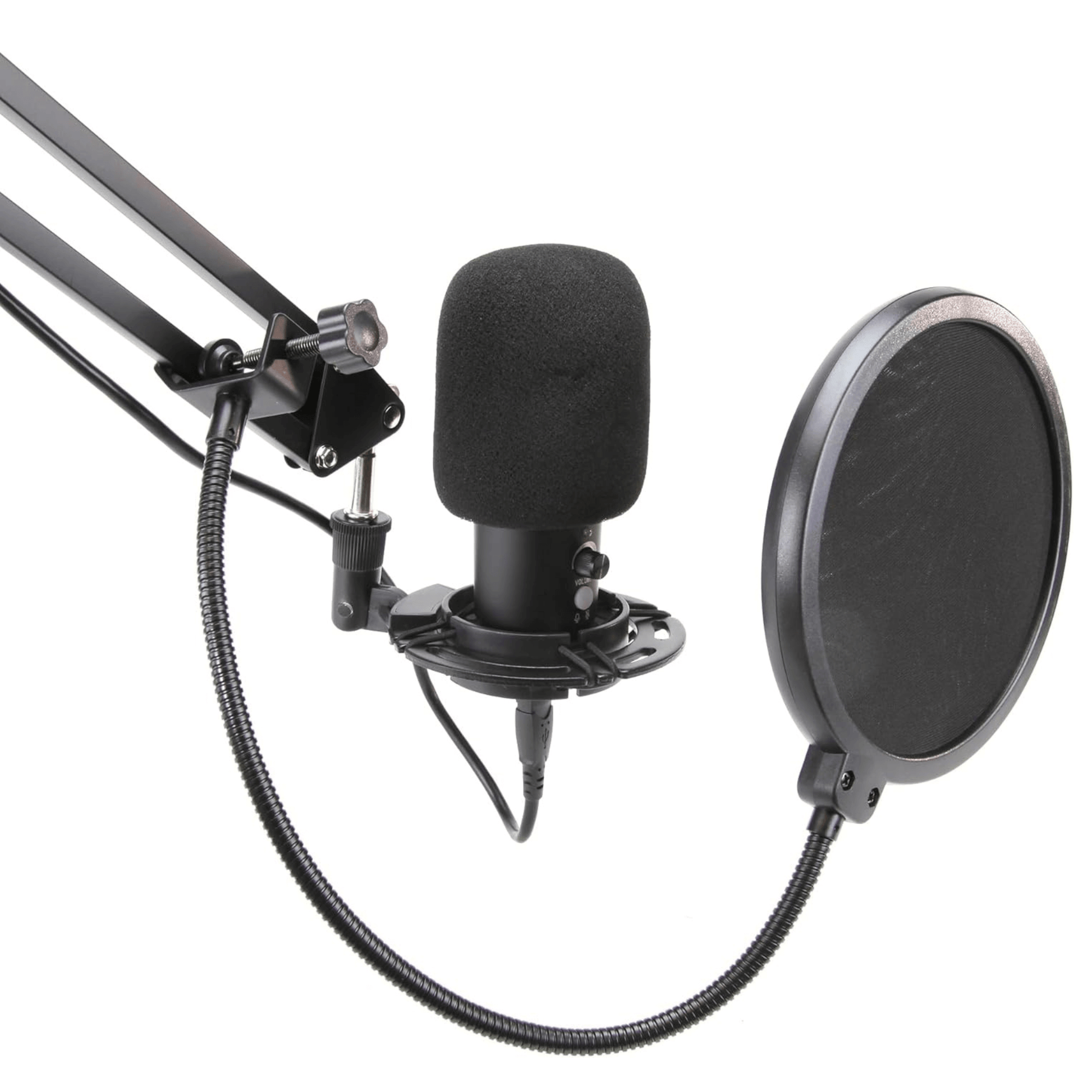 - Accessories included: USB Microphone, Cable 2.7M, Arm Stand with Base, Foam Microphone Cover, Pop Filter, Shock Mount